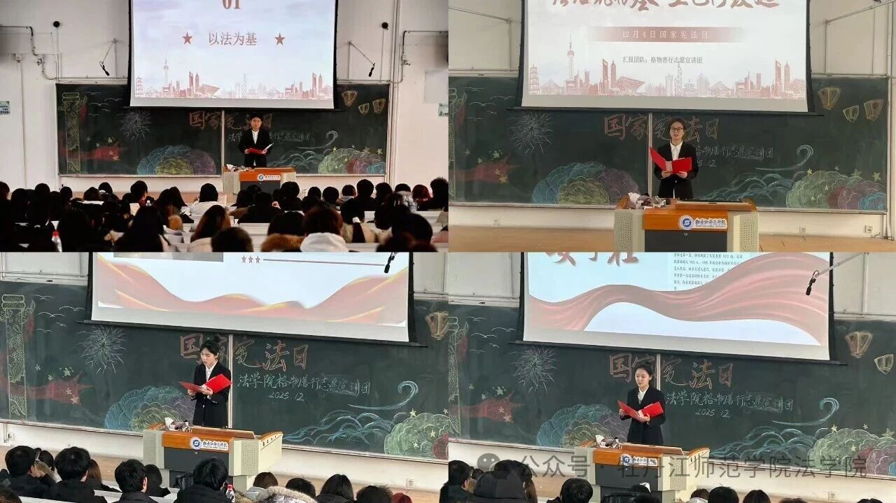 法律是社会安定的基石,亦是青春成长的护航伞。为让宪法精神浸润校园,引导大学生树立法治信仰,在12月4日国家宪法日这一重要节点,牡丹江师范学院法学院格物善行志愿宣讲团开展“法治筑根基,立己行致远”主题宣讲活动,用生动的阐释、鲜活的案例,让法治精神在校园中落地生根,浸润人心。