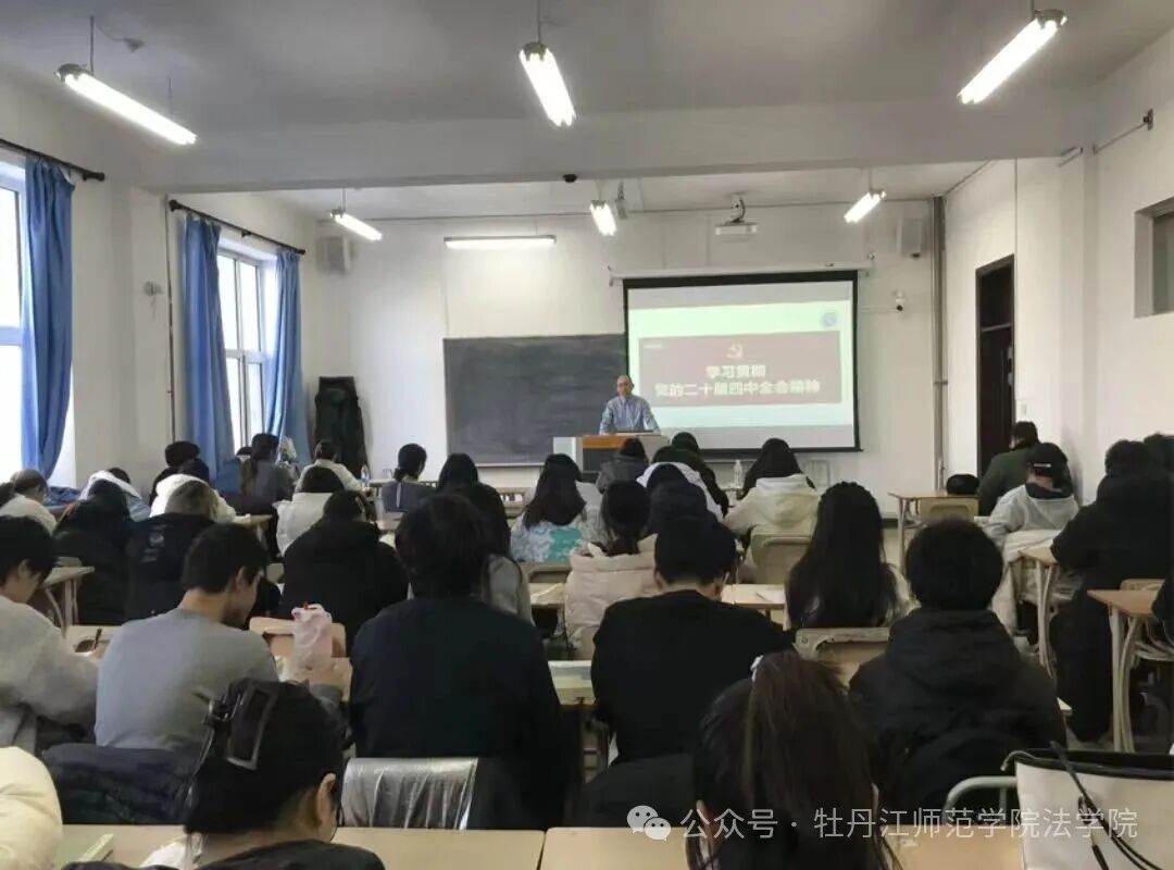 为深入学习贯彻党的二十届四中全会精神,准确理解党的二十届四中全会审议通过的《中共中央关于制定国民经济和社会发展第十五个五年规划的建议》(以下简称《建议》)的核心要义,引导法学院学生结合专业特色,把握新时代法治建设要求,法学院党委组织开展学习贯彻党的二十届四中全会精神专题宣讲会,本次宣讲由法学院副院长张戈平主讲。