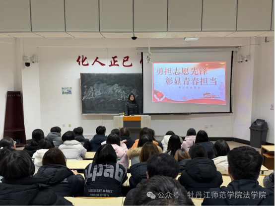 志愿服务从来都是双向奔赴的温暖,助人之路亦是自我成长之路。班会现场,宣讲同学围绕个人成长、社会认知、价值实现三大核心维度,结合法学专业特色,生动阐释了志愿服务对青年学子的增益赋能。参与志愿服务不仅能将专业知识转化为解决实际问题的能力,更能在社会实践中锤炼坚毅品格、练就扎实本领,青年通过志愿服务触摸社会温度、沉淀人生阅历,把所学所悟转化为回馈社会的实际力量。